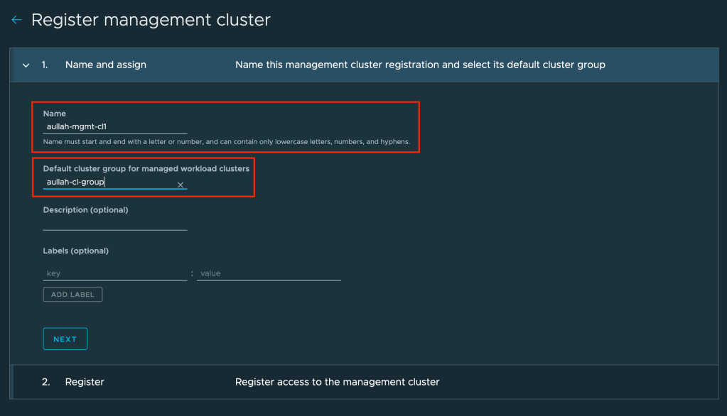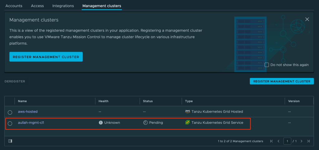 To start the registration process, we have to click on “REGISTER MANAGEMENT CLUSTER”.