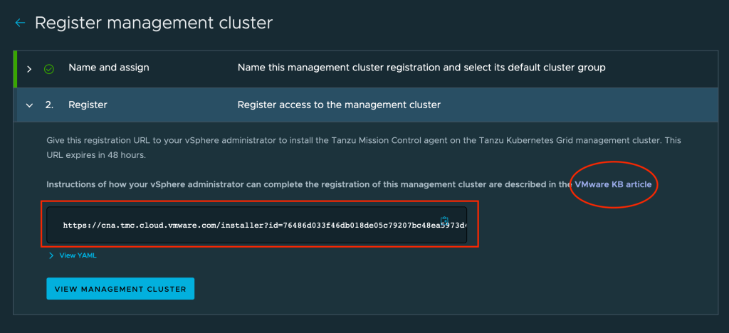 - Management Cluster registration KB80727 article